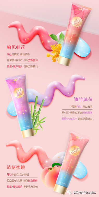 看到这里,各位小伙伴或许已经get到了国内牙膏内卷战中的两大维度——在牙膏的基础功效得到满足的情况下,品牌方面就只能在牙膏外包装设计和香型的水平差别化*上做文章。