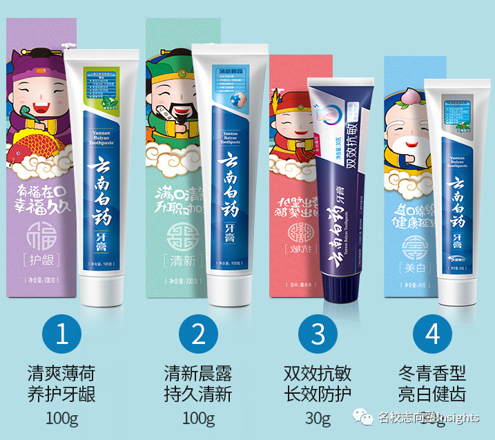 比如说国产老字号的云南白药、黄芩、冷酸灵等,基本是统一的单色包装,加上最基础的薄荷、花香、茶香或是汉方草药味,功能也限定于抗敏感、清洁、防蛀牙、清新口气。