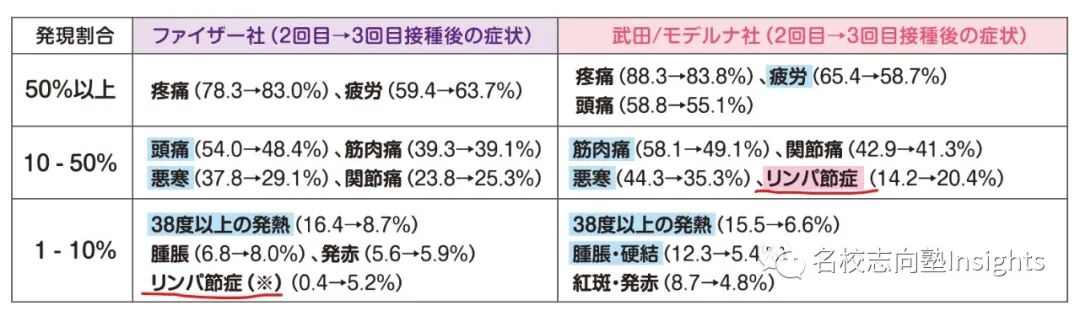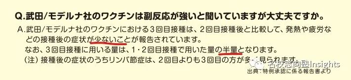 与前两针有所不同的是,目前日本政府已承认辉瑞、莫德纳、阿斯利康三种新冠疫苗的有效性(但官方提供的免费疫苗目前只有前两种),并且某些自治体还开始推荐大家在第三针时进行“混种”,以获得更佳的抵抗力。 比如,大阪府大阪市就专门绘制了一张混种排列组合表,为大家展示各种获得官方安全性与有效性认证的混种形式: *图片来自大阪市官网 厚生劳动省也专门制作了海报对混种进行解释,提到无论哪一种混种形式,抗体量都能有相当程度的上升。 *图片来自厚生劳动省 也就是说,日本从官方层面自上而下推荐大家进行第三针混种(前两针原则上还是需要接种同一种疫苗)。因此,在本次采访中,我们也为大家找到了所有种类的混种事例,包括两种“纯血派”(三针辉瑞&三针莫德纳)和两种“混沌派”(两针辉瑞一针莫德纳&两针莫德纳一针辉瑞),基本网罗了所有混种类型。 *国内灭活疫苗+辉瑞的情况已在第一次采访中讨论,感兴趣的同学可以点击下图查看Mr.秦的事例 此外值得一提的是,本次莫德纳疫苗的第三针使用剂量仅有前两针标准剂量的一半,因此接种者报告的副作用反应也普遍比先前更轻。不过,在第三针的副作用上,淋巴肿胀疼痛的例子会比前两针更多,这一点也在下文的采访中得到了确认(详见Yoyo的事例)。 *图片来自厚生劳动省 那么,事不宜迟,就让我们来看看不同种类接种的情况下会有哪种副作用反应吧—— 疫苗事故亲历者,人生信条为“不打白不打” 疫苗种类:莫德纳 第三针接种地点:庆应义塾大学会场 副作用量级:轻微 作为背靠神通广大的日本最大学友会“三田会”的庆应义塾大学塾生,Viola在很早的阶段(基本是每一针刚出来的时候)就完成了三针疫苗的接种。 无论是哪一针,她所经历的副作用都比较轻微。因此,你绝对想不到她就是传说中的疫苗事故亲历者——第二针疫苗混入金属片事故的大冤种。 *图片来自日テレNEWS 面对这样一个颇有价值的案例,笔者当然兴致勃勃地进行了盘问:“为什么还会想要接种第三针呢?不怕又出事故吗?” 答曰:“这个事故涉及的接种者那么多,事故发生后也没有见到任何严重后果的报告,所以虚惊一场的可能性更大。以我自己来说,三针疫苗都没有什么严重副作用。最重要的是,有免费疫苗不种白不种啊!” 说到Viola的副作用,无疑是本次采访中最轻微的一位。 她的第一针,除了手臂酸痛以外无副作用; 第二针(事故针)时手臂倒是不怎么酸痛,但有短时的低烧(37度左右)。当晚她的室友送了一板止痛退烧片,虽然万全没有到需要退烧药的程度,但本着不吃白不吃的心态,吃完之后果然副作用一扫而空; 第三针时副作用和第一针一样,仅手臂酸痛,副作用十分轻微。轻到什么程度呢?就是笔者本着同窗好友的情谊,为防止副作用产生乏力、眩晕、呕吐等不测,在接种完第二天全天陪着她,结果被拉着把整个银座逛了一遍,她没乏力,我乏力了???? 最后,当问及是否考虑在日本各方政策落实后接种第四针,Viola贯彻了她一如既往的人生信条: “打呀,干嘛不打呢?来都来了,不打白不打。” *关于第四针新冠疫苗的报道 刷个牙晕三次,副作用反应中心表示问题不大 疫苗种类:辉瑞 第三针接种地点:新宿区会场 副作用量级:严重 与上文一切由学校包办的Viola不同,作为社会人的VAN的接种之路就没有那么一帆风顺。尤其在疫苗四处短缺的2021年下半年,她完全约不到自己所在区役所的疫苗,只能通过各路人脉找到了一个教育工作者的专用接种会场,进行辉瑞疫苗的接种。 相较于前两针疫苗,第三针疫苗的接种体验则要好上许多,或许是大多数人尚且处于观望态度,目前区役所的疫苗十分好约,基本可以任君挑选时间段。 至于为什么大多数人还处于观望态度,类似VAN这样严重影响日常生活的副作用或许是原因之一。 谈及副作用,VAN显得十分激动,事无巨细地讲述了那几天的一切感受与感悟。笔者简单梳理如下: 第一针接种后的当天晚上开始,她就开始乏力、手臂酸痛,甚至还有一个奇怪的副作用是食欲大增,作为一个平时毫无胃口的人,她当晚把家里的零食几乎全吃了; 第二针副作用为乏力,恶寒,发烧(超39度),她表示浑身裹满被子也没什么用,已经很多年没有经历过这种难受的发烧了,一直到接种后第二天晚上才开始退烧; 第三针之后的当天晚上同样经历了恶寒与发烧(38.5度),这两种症状较第二针稍轻。但是,从她第二天睁眼开始,诡异的事情就接连不断地发生—— 首先是剧烈眩晕。剧烈到什么程度?也就是根本站不住脚,刷个牙晕了三次,最后干脆放弃刷牙开始躺平。当时她误以为自己低血糖,赶紧拆了块蛋糕吃,结果后续引起了两次呕吐,胃里的蛋糕残骸连带胃液一起逃离了身体。 其次是来自VAN室友的反馈。据她陪护的室友所说,一开门就发现VAN倒在床上不断发出吭吭的呻吟。她赶忙拨通政府的副作用反应热线,结果获得回复——“第二天发生什么都是正常的,如果发现意识开始模糊或是持续较长时间胡言乱语,请直接呼叫120后再与我们联系。”言下之意,就是VAN这种目前不算严重,可以再观察观察。所幸观察到第二天晚间,VAN已经基本恢复了正常。 *笔者查遍了官方副作用一览表,愣是没发现这种神奇的案例 作为一个深信“药物会影响免疫抗体生成”与“副作用越大抗体越强”的人士,以上全程,VAN都没有吃药改善副作用。并且她也表示,