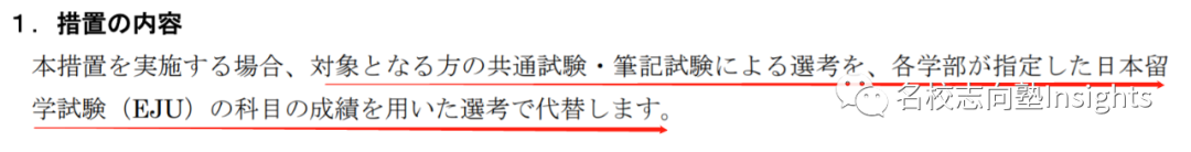 申请特别举措的考生需要提交的留考科目与其他考生不同,如在正常情况下报考法学部的考生只需提交留考日语成绩,而采用特殊举措的考生则需要提交日语和文综成绩。详细科目要求请见官网。