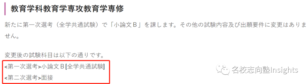 2023年度外国学生入试中,教育学部教育学科教育学専攻教育学専修、理学科生物学専修2专业的选考发生变化。