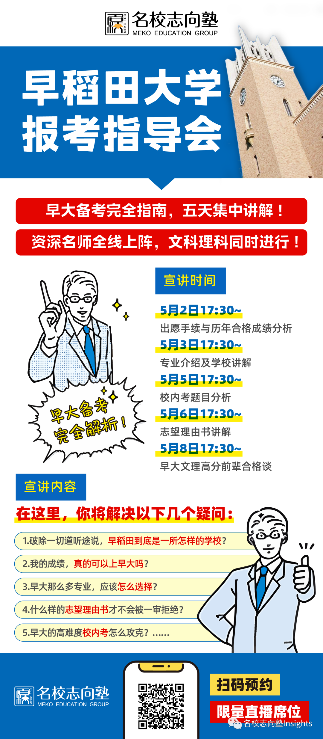 为了解决广大同学难以消化入试情报的问题,名校志向塾早大报考指导会正式上线!!!