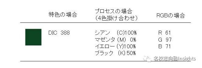 同样,对柏树爱得深沉的畜大也严格规定了官方代表色的具体参数值。从中我们也可以看到同样是浓绿色,畜大和上期的名古屋大学还是不一样的。