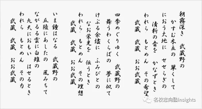在如今的武蔵大学校歌中,依稀可见这个典故的痕迹——