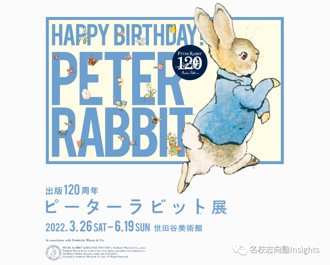 这里就不得不补充一下日本人民对于彼得兔的热爱了。作为一个诞生于1902年的超长寿卡通形象,彼得兔不仅出现在一般商品、大学logo上,此前还成为了日本三菱UFJ信托银行的代表吉祥物。最近恰逢彼得兔诞生120周年,日本还在举行全国巡回的彼得兔展,目前正好是东京的展期(3月26日—6月19日),看着萌萌彼得兔长大的小伙伴千万不要错过!