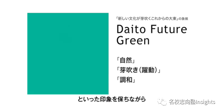 青桐是大东校园的标志物,通过象征100年积蓄的历史和多文化Crossing的年轮,与象征成长的嫩芽组合而成全新的大东100周年logo。借此机会,大东也宣传了一波今后的校园构想——促进多文化交流,以此跻身国际化强校之列。
