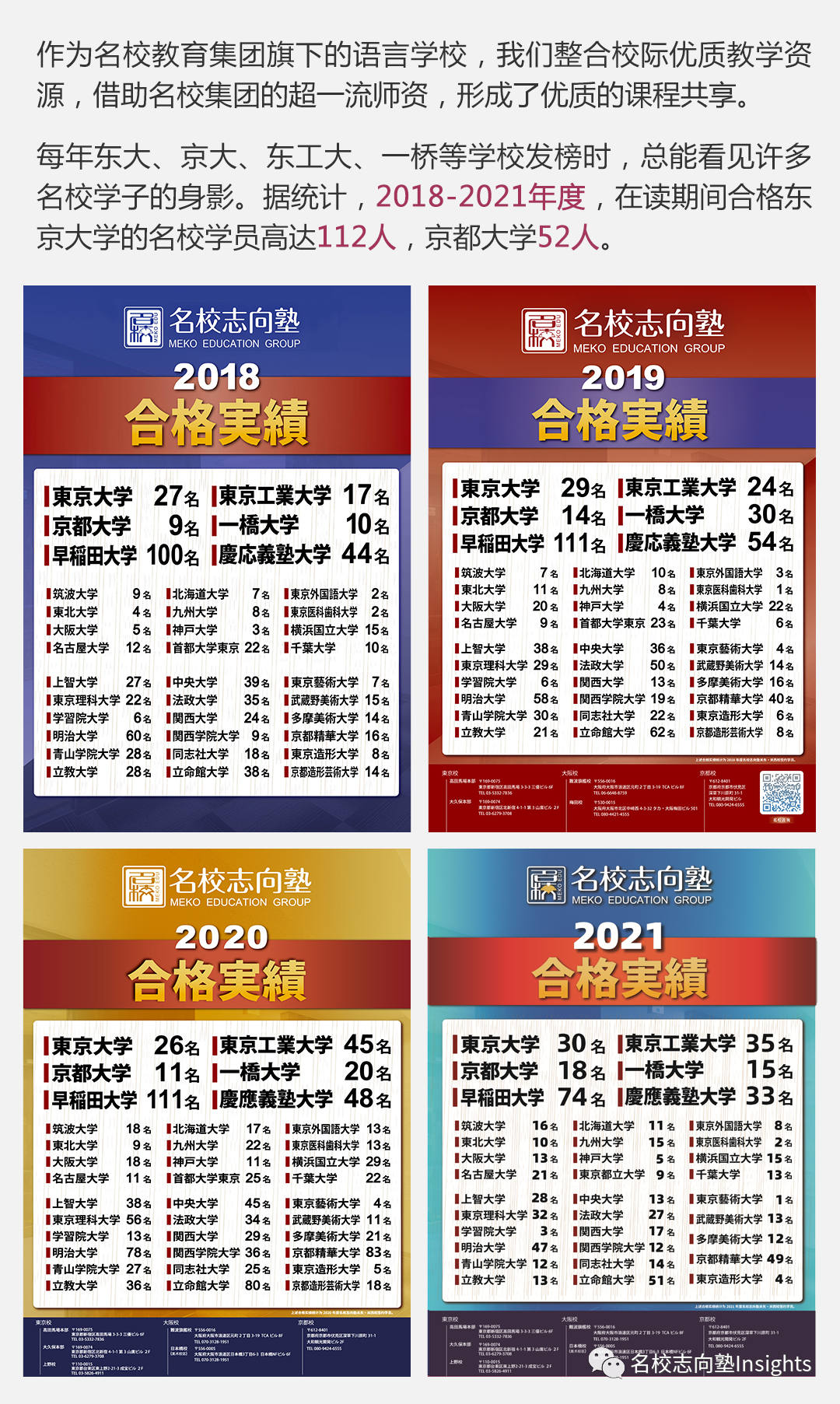 在教育政策改变、“优良校”评测难度急剧上升的档口,根据最新的评定标准规定,名校教育集团旗下的四大语言学校(名校教育日本語学校、東京外国語学院、東京巣鴨国際学院、国際善隣学院)及三大专门学校(学校法人白荻学院ファッションビジネスカレッジ東京、専門学校アニメ・アーティスト・アカデミー、専門学校東京経理綜合学院)一路高歌猛进,全体斩获“优良校”称号,确立了在日外国人教育业界的全新的标杆!