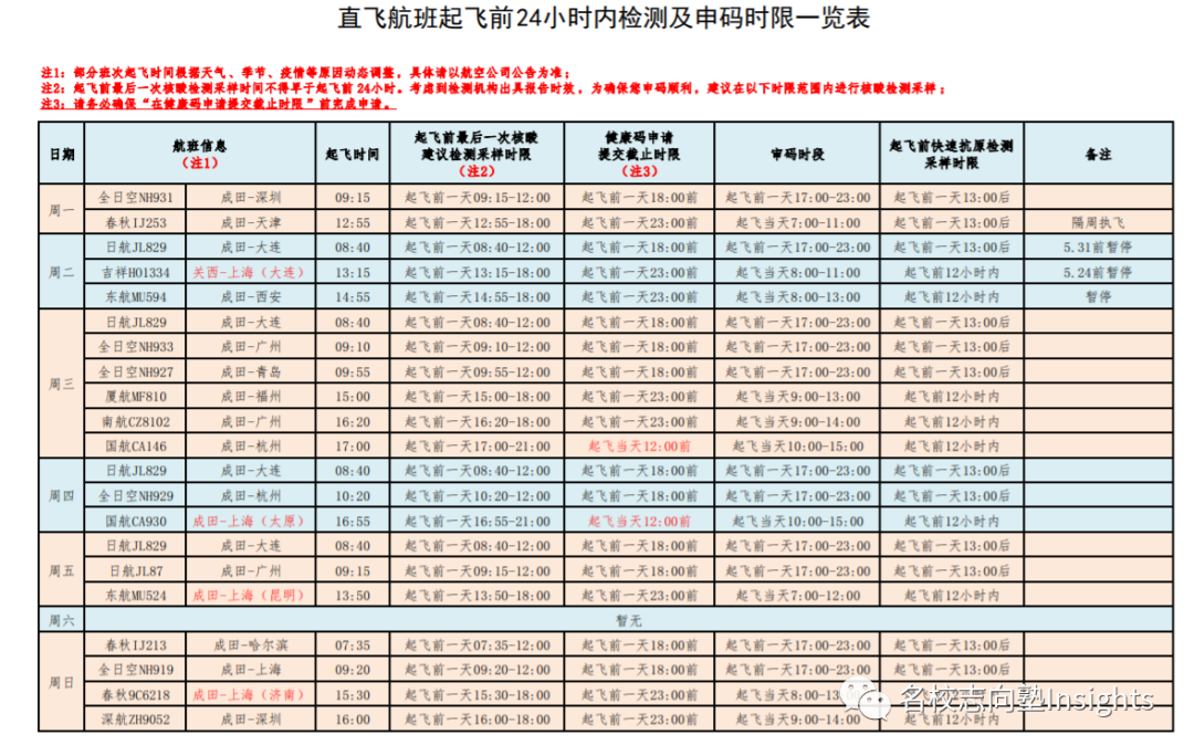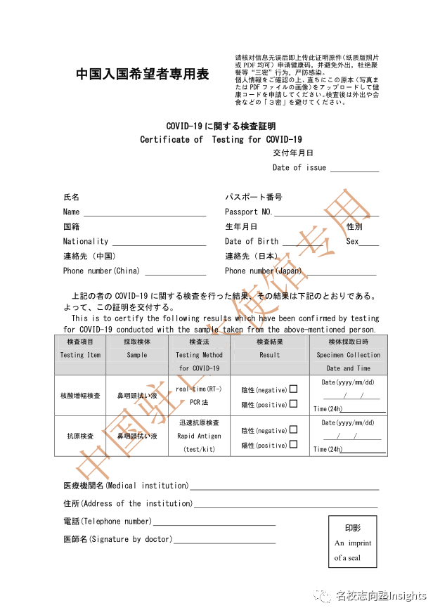 行前检测均须在驻日使领馆指定检测机构实施。