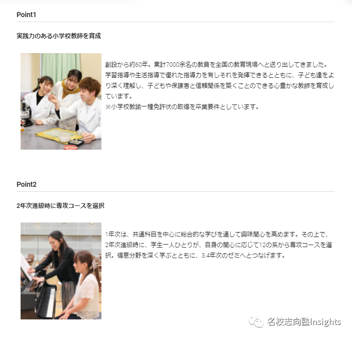 以学校教育学科为例,校方专注于小学教师的养成,设置了异常充实与高难度的课程:
