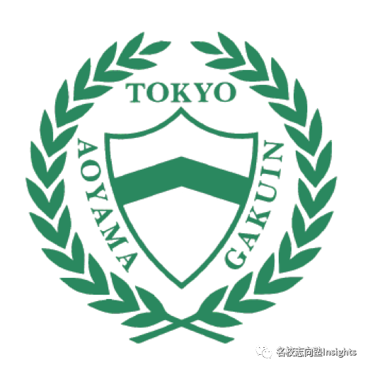 该logo是在1952年,在学生中进行公募后决定的,因此在整体设计上充满了时代的气息。主体为教会学校校徽中常见的盾牌形状,出处是《新约圣书》第6章第16节的“以信仰为盾”。正中为青学首字母(Aoyama Gakuin)的A与G,最下方的文字则是哥特体的Univ.大学缩写。