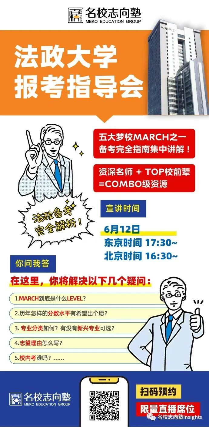 6月12日东京时间17时30分,我们在名校志向塾Insights直播间不见不散!速度扫码预约⇣⇣⇣