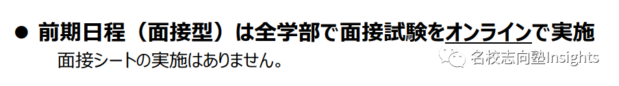 前期日程(面接型)所有学部举行线上面试,并且取消面接シート。