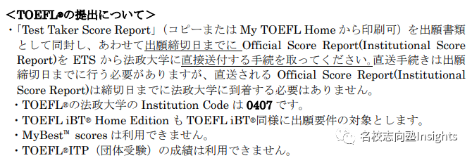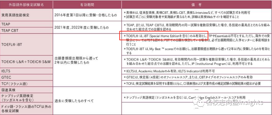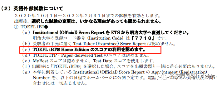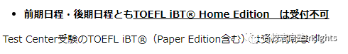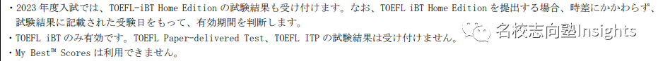 前期日程・后期日程均不可使用托福家考。