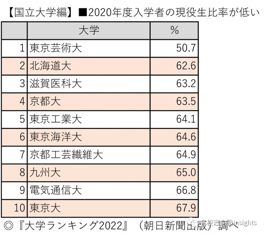 根据朝日新闻的『大学ランキング2022』(大学排行榜2022),东京艺术大学的应届生入学比例为全日本最低,仅有50%,甩开了第二位一大截。这就意味着,只有寥寥半数的学生,能够不复读直接上岸。这还不排除一些高中时特意休学以保证应届生身份的情况。