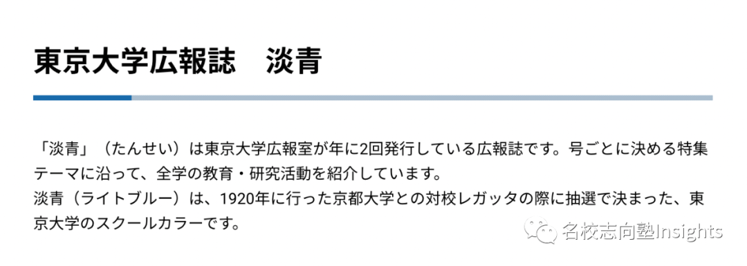 毕竟,就连历史悠久的东大校内杂志也取名为「淡青」,浅蓝色无愧于东大传统。值得一提的是,不知道是不是为了炫耀自己绝佳的手气与老对手京大的“一失足成千古恨”,「淡青」杂志的官方描述上还把这件事又写了一遍,笔者看到的一瞬间甚至有点无语凝噎。