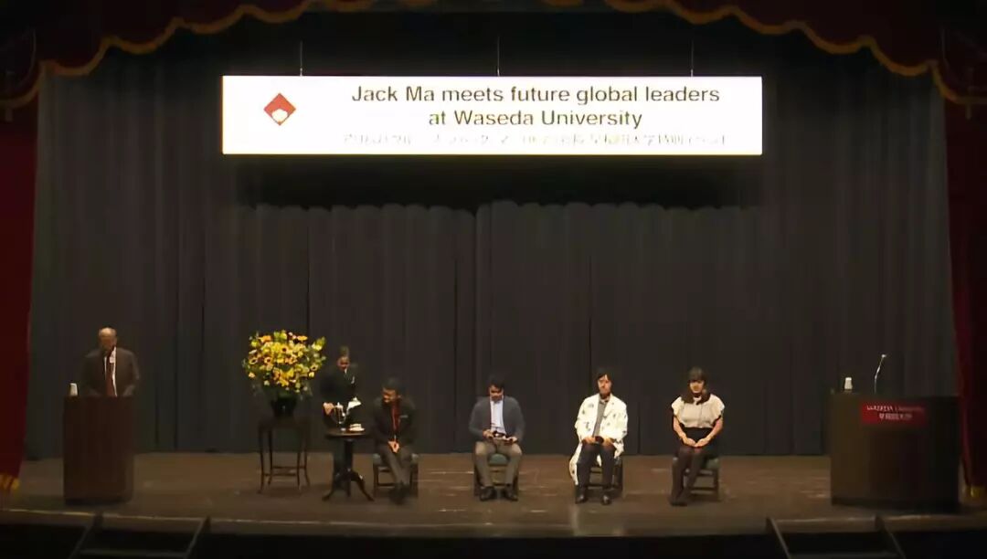 马云来到日本知名度爆表的早稻田大学进行演讲,预约人数爆满,现场座无虚席,同时YouTube上也进行了现场直播。