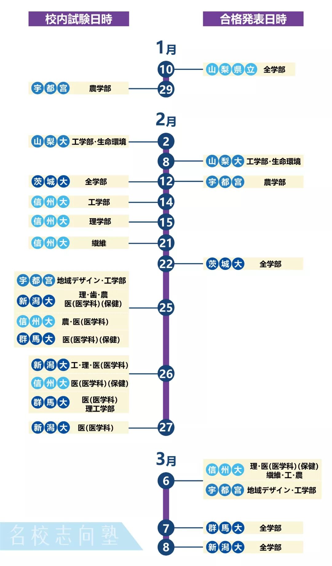 茨城大(1/22~1/24)信州大(按学部不同 1/4~2/1)