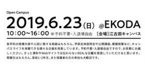 1 武藏野美术大学 地点:鷹の台キャンパス 时间:2019年6月15,6月16日 10:00-16:30 入退場自由 2 多摩美术大学 地点:多摩美術大学八王子キャンパス 时间:2019年7月13日(土)・14日(日)9:30–16:30 3 女子美术大学 时间:2019年7月13日(土)~2019年7月15日(月祝)10:00~16:00 ※14日(日)のみ10:00~18:00 「オープンキャンパスin女子美祭」 时间:2019年10月26日(土)~2019年10月27日(日)10:00~16:00 「オープンキャンパスin卒業制作展」 时间:2020年3月8日(日)10:00~16:00 地点:杉並キャンパス、相模原キャンパス 4 东京造形大学 时间:7月13日(土) 9:30~17:30 / 7月14日(日) 9:30~16:30 [予約不要・入退場自由] ※一部プログラムを除く 地点:東京都八王子市宇津貫町1556 5 日本大学艺术学部 地点:江古田キャンパス 时间:2019.6.23(日)10:00~16:00 6 大阪艺术大学 时间:5月26日/ 7月14日 7月15日 9月1日 10:00~16:00 7 爱知县立艺术大学 【美術】:2019年7月28日(日)10:00~17:00 【音楽】:2019年7月27日(土)10:00~17:00 8 横滨美术大学 时间:2019年5月12日 13:00~16:00 9 宝塚大学 时间:2019年5月26日(日)13:00-16:00 10 神户工艺大学 时间:2019年4月28日 6月2日 6月16日 7月21日 8月11 8月25 12月22 2020年2月8日 10:00~16:00 11 东北艺术工科大学 时间:2019年5月25 10:00~16:00 12 文化学园大学 时间:2019年5/25(土)12:00~16:00 13 杉野服饰大学 时间:2019年4月21日(日) 6月2日(日) 6月16日(日) 10:00〜16:00 入退場自由 会場:目黒キャンパス 第2校舎エントランスホール 参加条件:予約不要、参加無料、入退場自由、ランチ無料 另外: (1)东京工艺大学开放日暂时日程未出,约为六月初和七月初两次(艺术部) (2)本年度名美美术也将安排部分美术大学开放日带队活动。敬请期待!~オープンキャンパス」