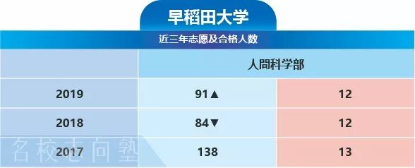 和文学部如出一辙,17年同样也是早大理工学部志愿人数的异军突起之年,甚至连18年人数大幅回落、19年慢慢回血的趋势都一模一样。但与诸文学类学部的考情相比尤其引人瞩目的是,創造理工18年合格人数居然都一并下降了一半左右,19年志愿人数也直线下降。