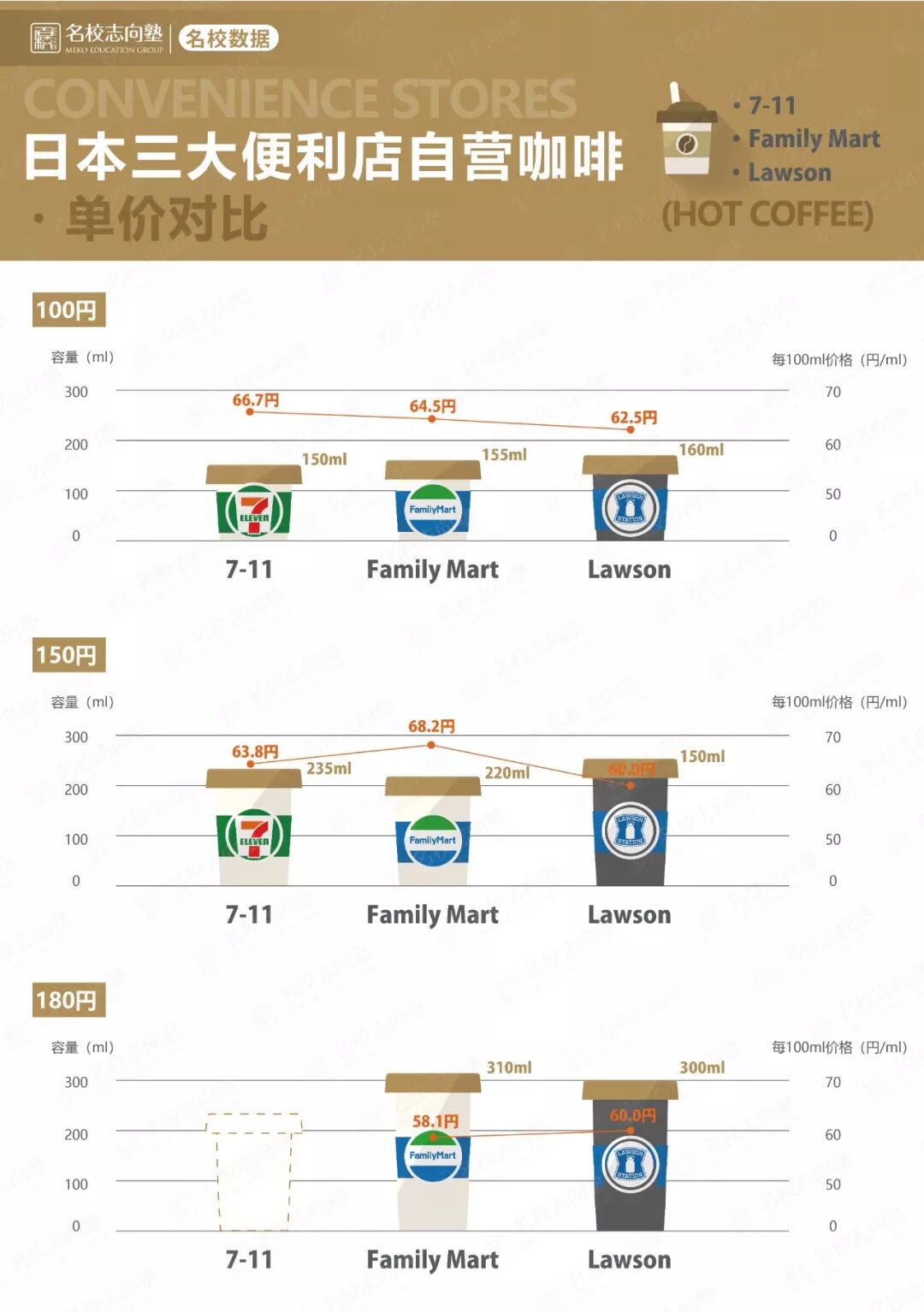 日本三大便利店相继推出了自营现磨咖啡,S size一杯统一100日元,在日本100日元基本是所有商品最小的计数单位,比起动辄500~700日元一杯的星巴克,100日元喝到一杯现磨咖啡,甚至低于便利店内灌装咖啡的售价,不仅仅提神,现磨咖啡独有的香气,加上拿铁奶泡的润滑口感,100一杯包你想来第二杯。