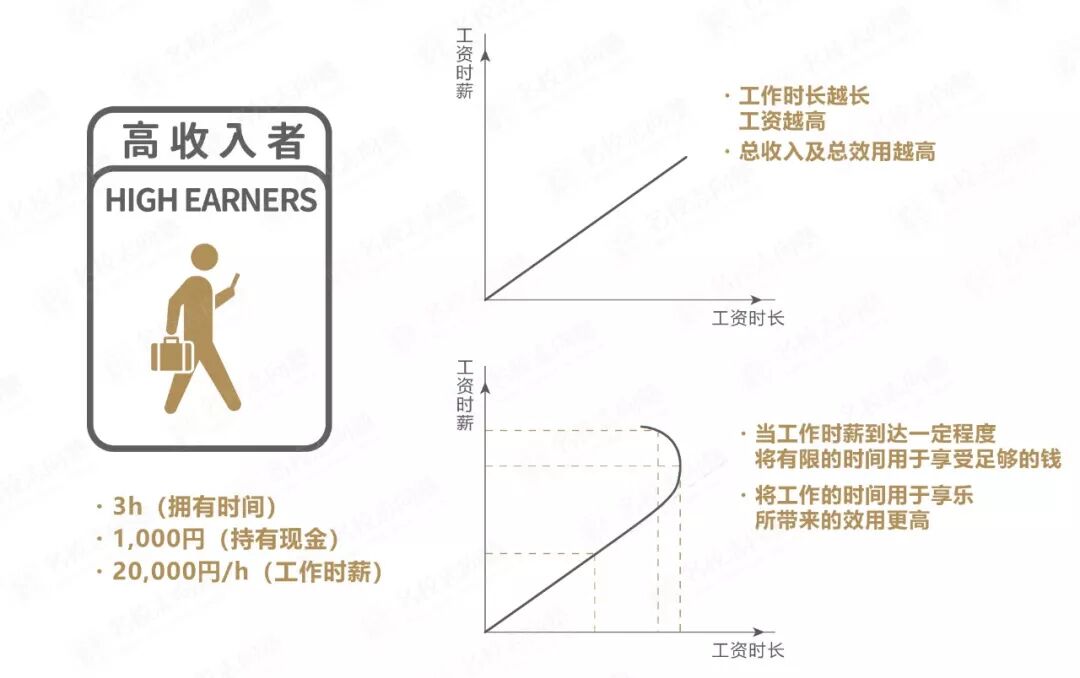 这种情况下我们会选择多工作时间来提高自己的收入,而且时薪越高,我们干活儿越久,钱拿得更多!美滋滋。这个时候时薪的高低和工作时长成正比关系。